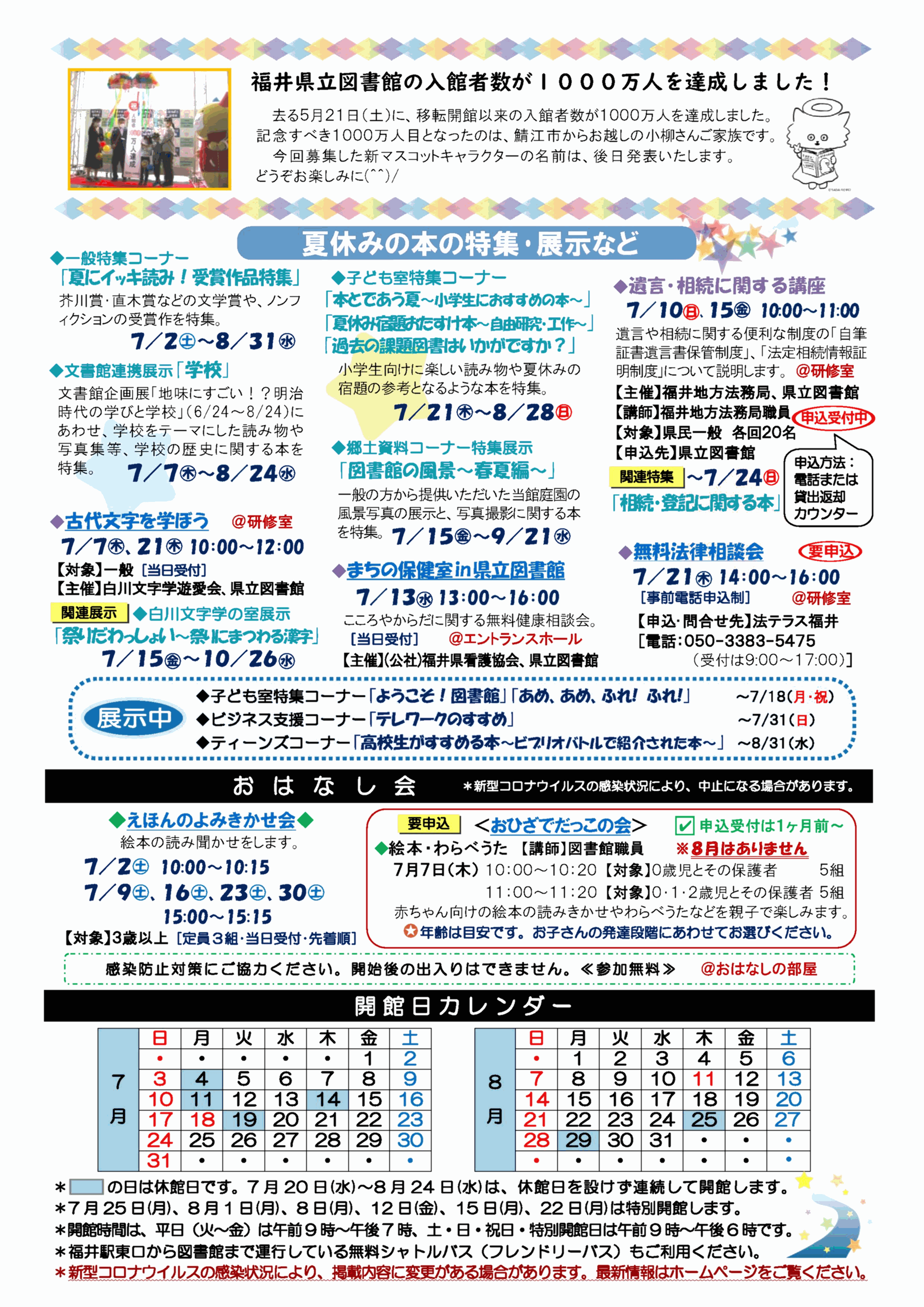 | 福井県まちづくりセンターから、 イベントのご案内です。 [画像:20220707_102459_0.png][画像:20220707_102541_1.png] リサイクルと言えば、先日まで実施していました ペットボトルのふた回収です |