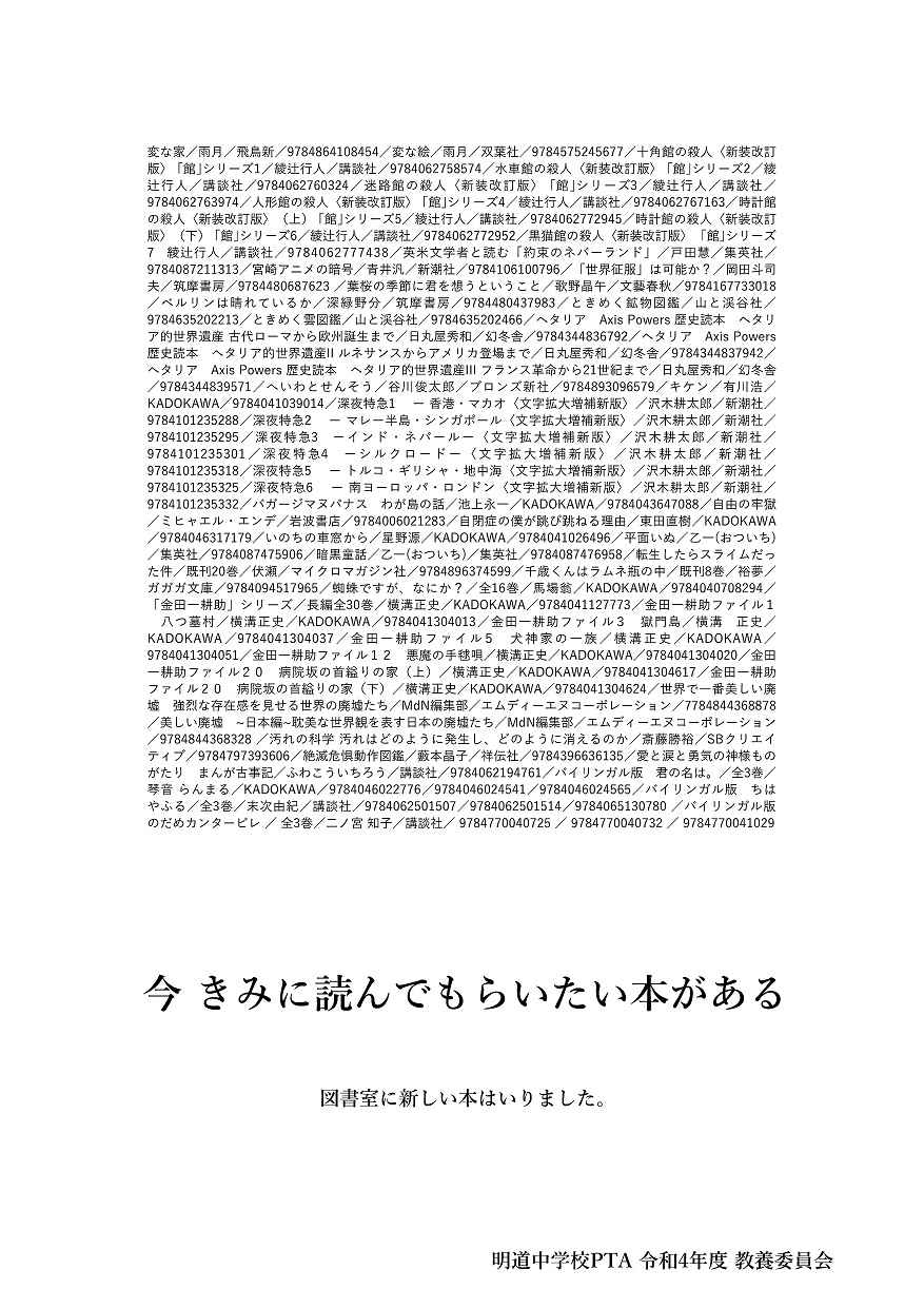 PTA教養委員会から、56冊の本が寄付されます。