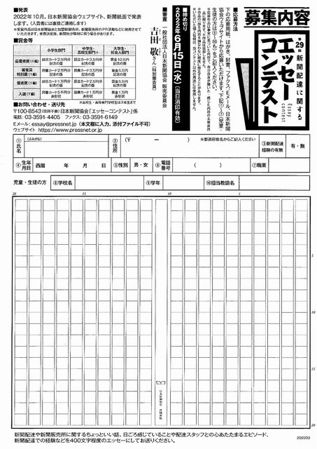 新聞配達に関するエッセーコンテスト