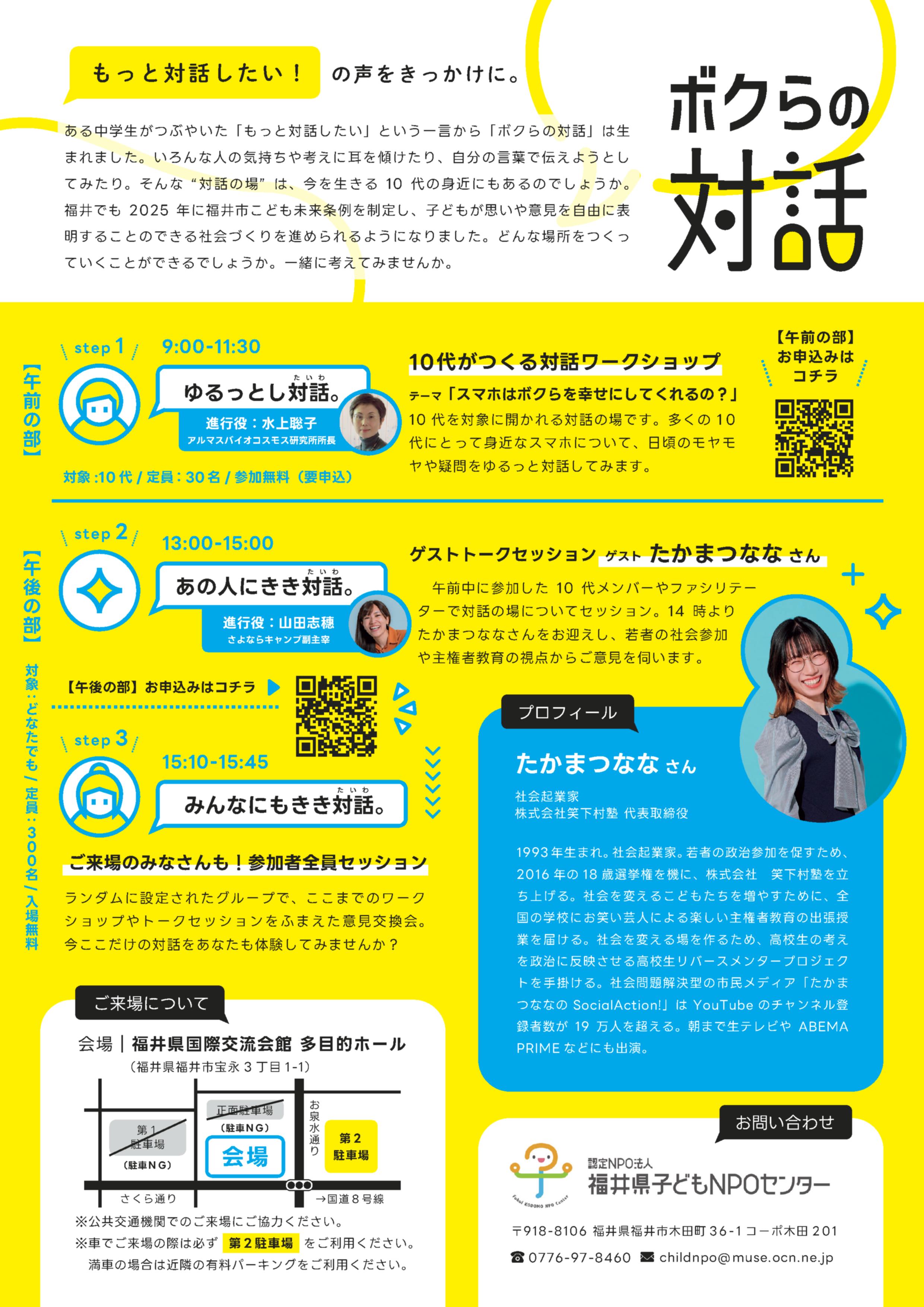 本イベントでは、福井県内の中学生がつぶやいた「もっと対話したい」「対話に
