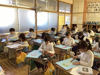 今年の版画は彫刻刀で挑戦です。初めての彫刻刀にわくわくしながらも、みんな集中して慎重に彫っていました。どんな作品ができあがるのか、楽しみですね。