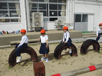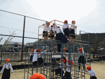 大休みと昼休みには校庭や中庭に行き、友達と遊具で遊んだり生き物を探したりと、のびのびと遊んでいます。