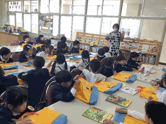 また、図書館司書の先生に、学校の図書室の使い方を教えてもらいました。たくさんの本がある図書室に目を輝かせ、読んでみたい本を手に取っていました。これから、多くの本との出会いがあってほしいと願っています。