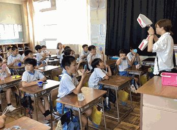 | 6月19日(木)4年生を対象に「あさむつ苑」の職員の方を講師としてお招きし、介護の仕事について学ぶ授業を行いました。会の最後には、施設で使用している車椅子に乗る体験も |