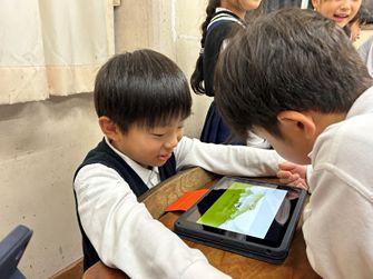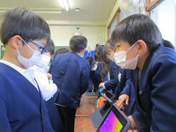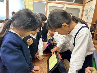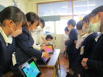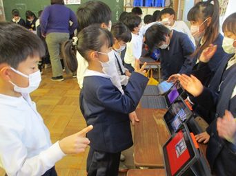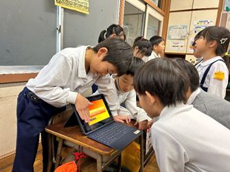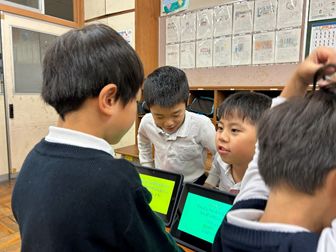 10月に行った、町たんけんの学習のまとめとして、クイズをつくりました。1年生にクイズに答えてもらい、解説をすることで、学んできたことを伝えました。子どもたちは、タブレットを使ってクイズをつくることにも慣れてきて、文字の大きさや色なども工夫をこらしていました。