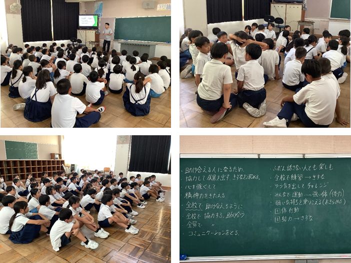 | 10月2日(水)に校内体育大会がありました。夏休みがあけてから1ヶ月間、準備や練習をがんばってきた6年生。せいいっぱいがんばり・めいいっぱい助け合い、達成感を味わって |