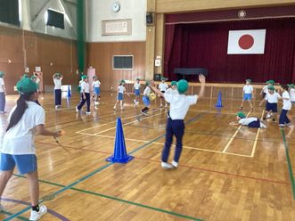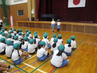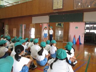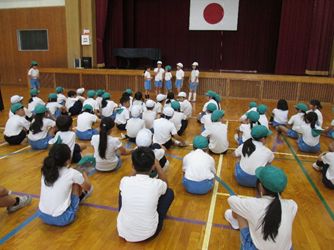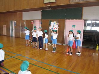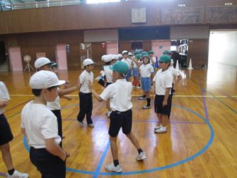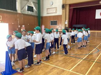 | 夏休み前、最終日。はじめての夏休みに向けての宿題やおたよりを確認しました。3時間目の体育では、「夏をのりきろう会」と題し、体育館で「なんでもバスケット」をしました。「 |