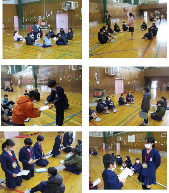 「6年生を送る会」1日目が行われました。1年生の金メダルプレゼントの後、いよいよ3年生の番です。