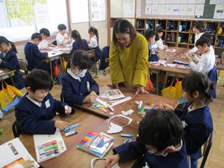 ALTのエミリー先生に、イースターについてのお話を聴きました。グループに分かれて、イースターの工作もして、楽しい時間を過ごしました。
