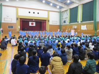 2月12日の大休み、わくわく交流デーで発表したことを2年生から6年生に披露しました。1年間、たくさんお世話になったお兄さんお姉さんに成長した姿を見せることができ、子どもたちもとても良い表情をしていました。お兄さんお姉さんも、たくさんの拍手をくれたり、応援してくれたりと、とても温かい雰囲気でした。そうじのときに、「すごかったね。」ってほめてくれた、「かっこよかったよ。」って