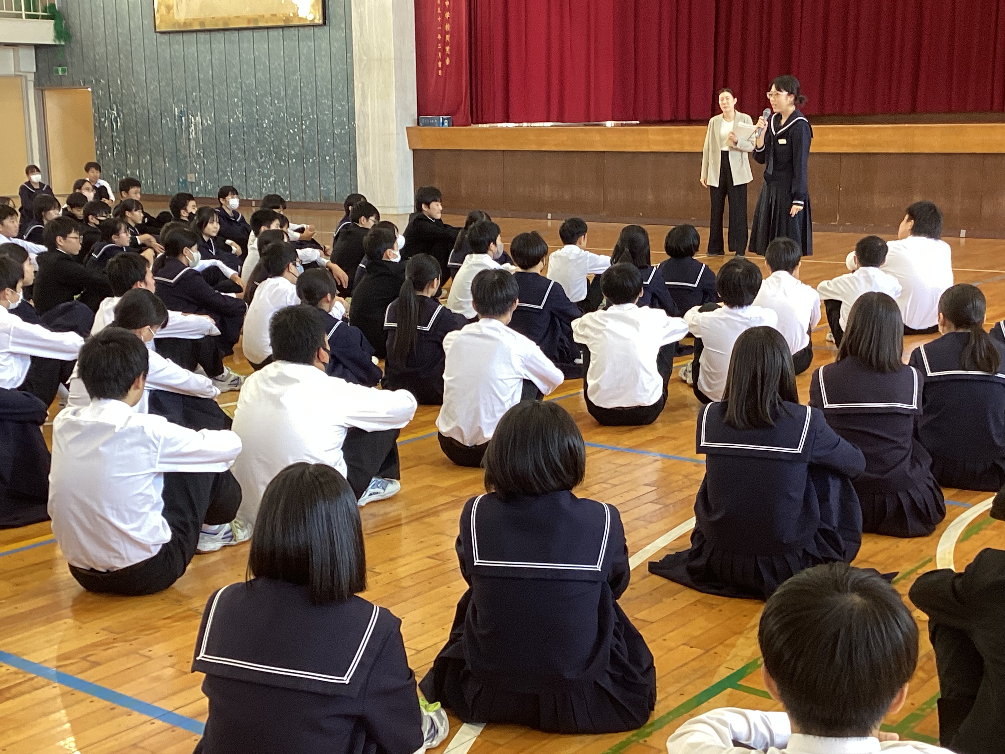 今日の5限、体育館で先日行った2年生の職場体験についての振り返りを行いました。