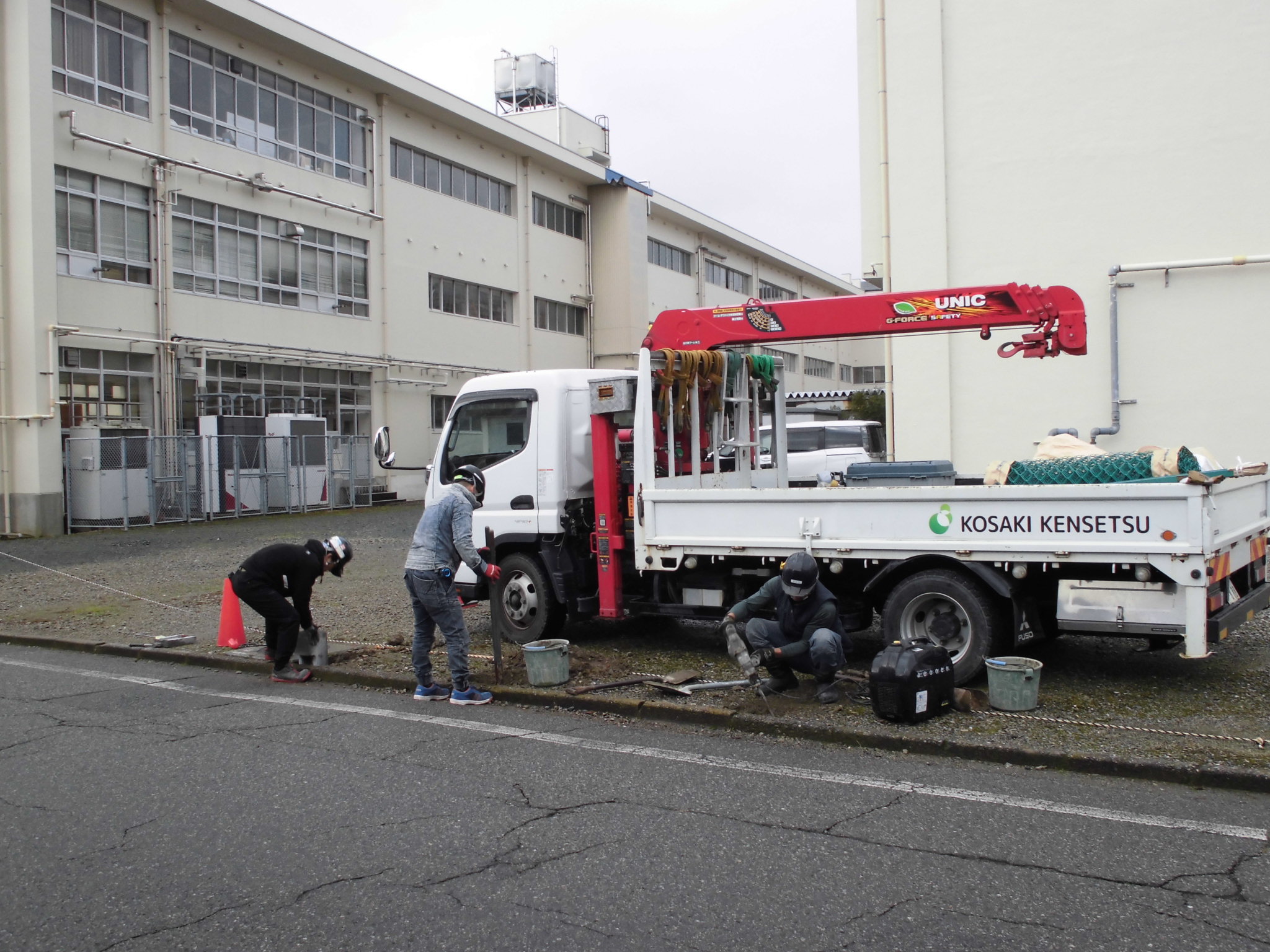 今日の午前中、学校敷地東側のフェンスを延長する工事が行われました。