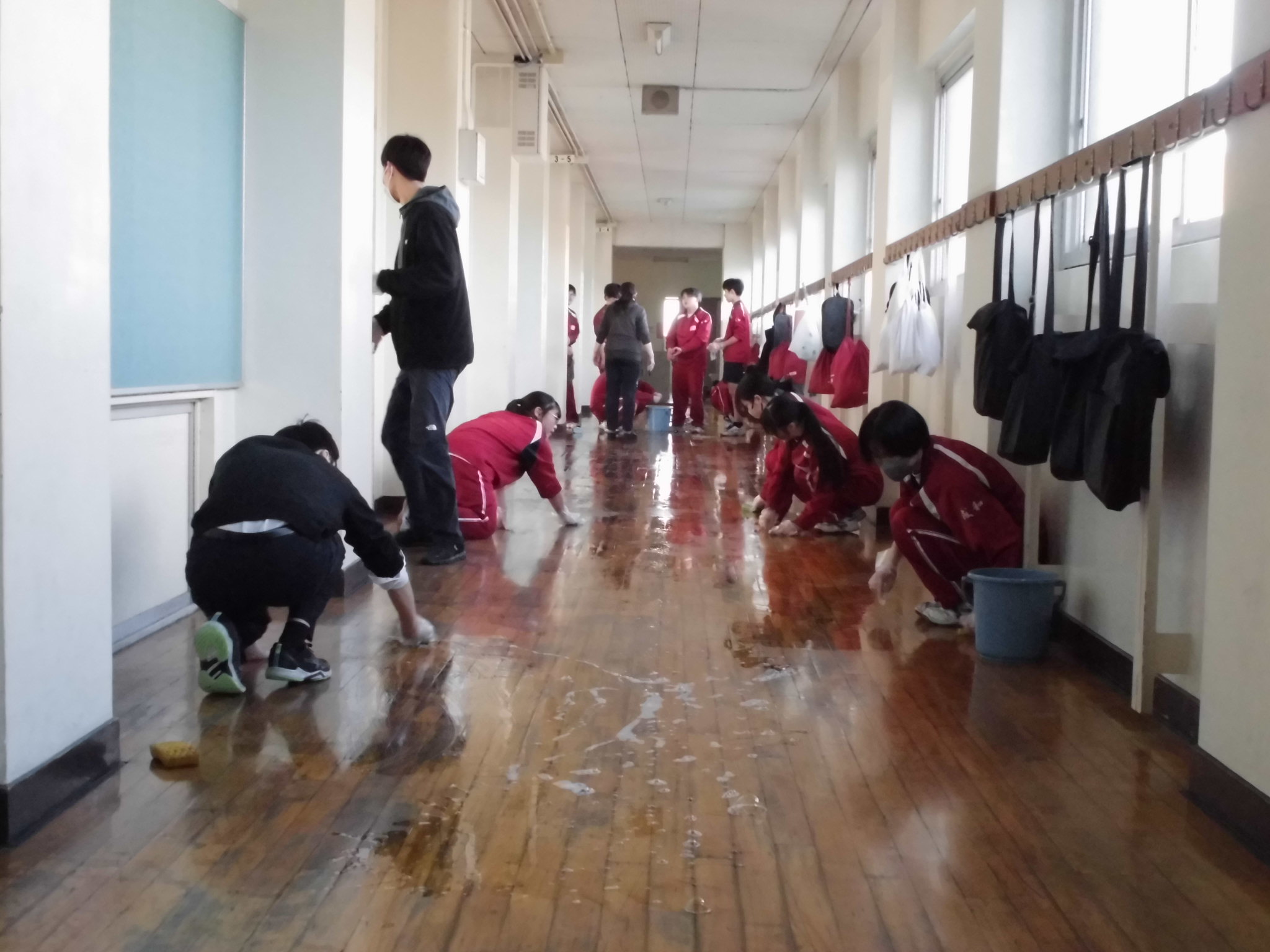 お世話になった校舎に感謝の気持ちを込めて、一生懸命に床を磨いていました。