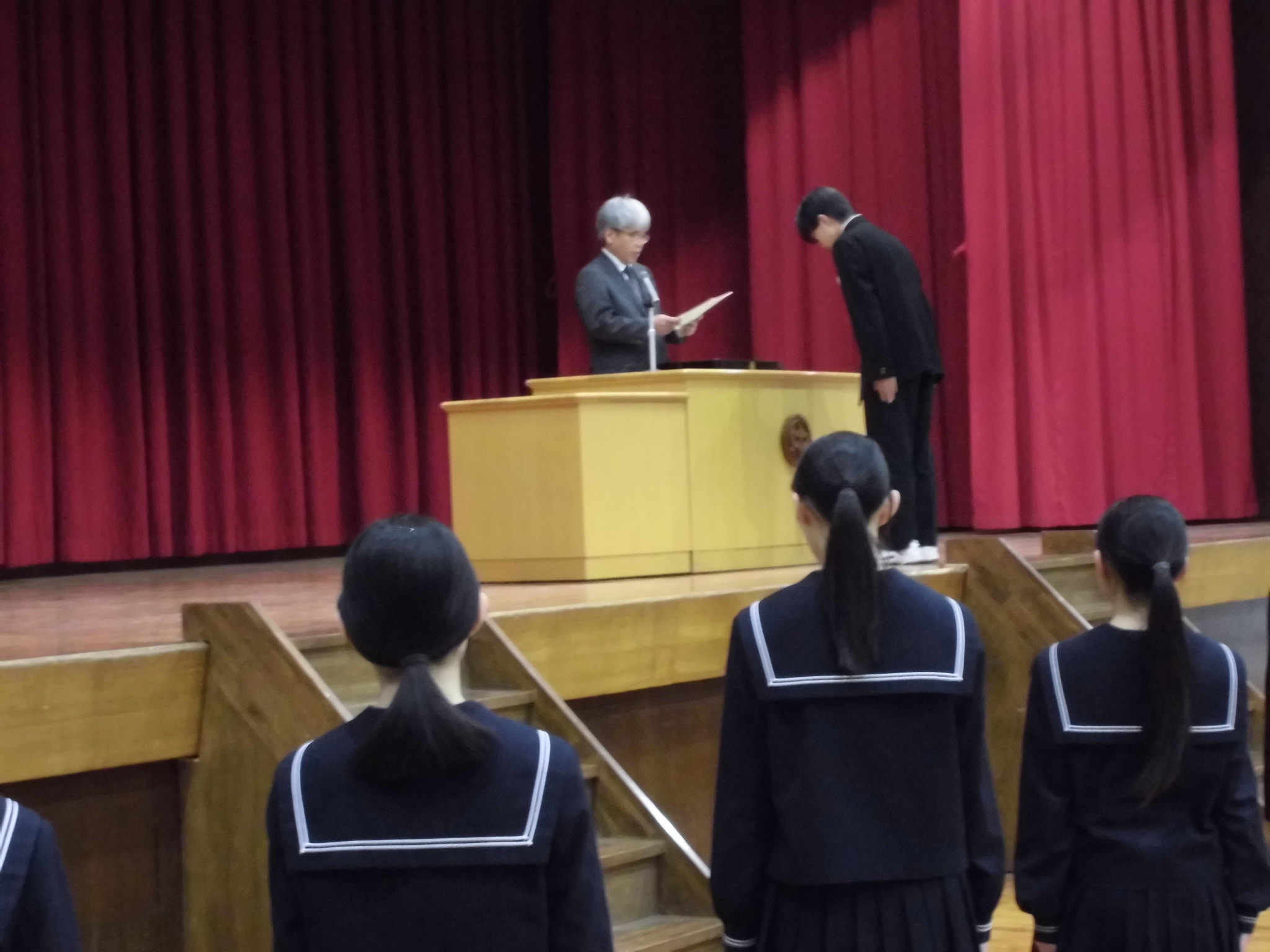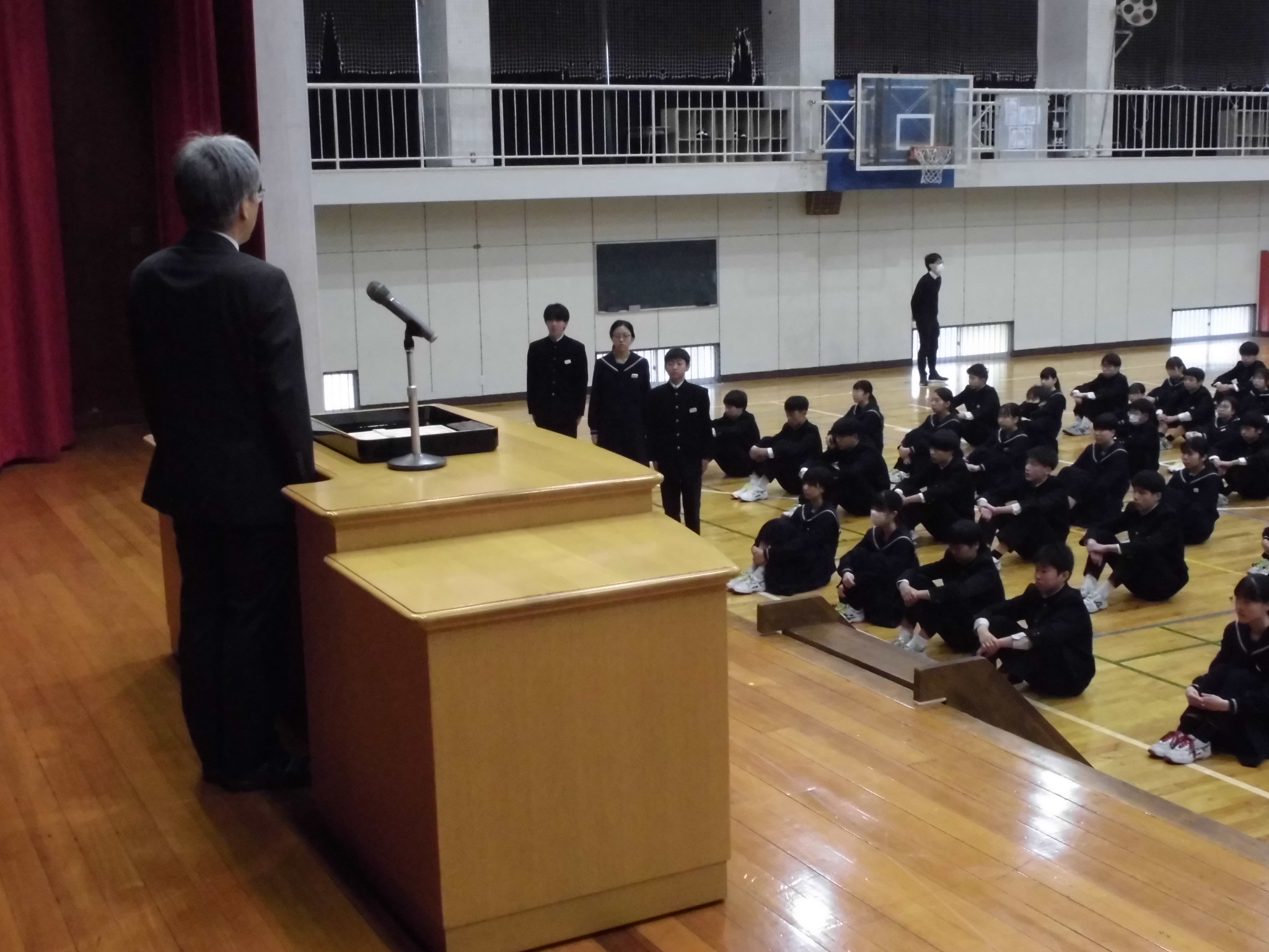 また、1年生からは、代表生徒があいさつの言葉を言いました。