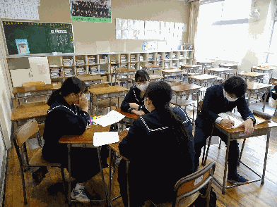 本日は、3年生が「全国学力調査」を受けました。 国・数・理・生活状況調査と4時間かけて受けました。 緊張の面持ちの中一生懸命問題に取り組んでいました。 [画像:20220419_123130_0.p