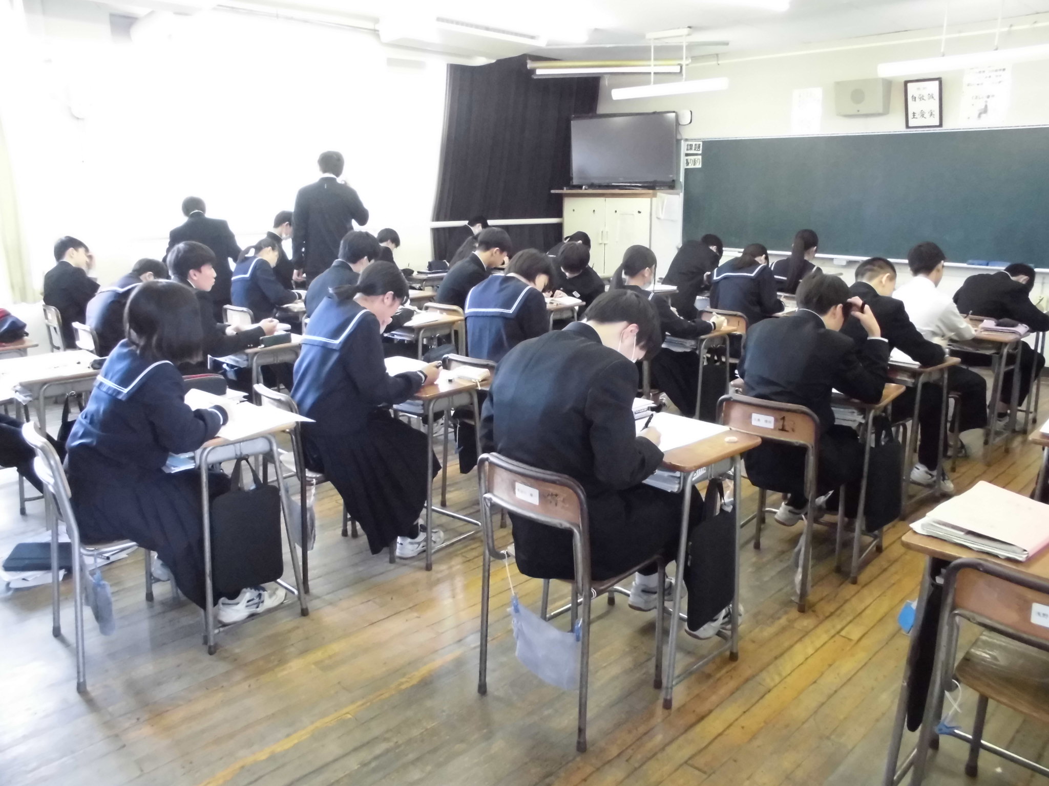 授業では、定期テスト対策の時間があり、自学したり教え合ったりして明日に備えていました。