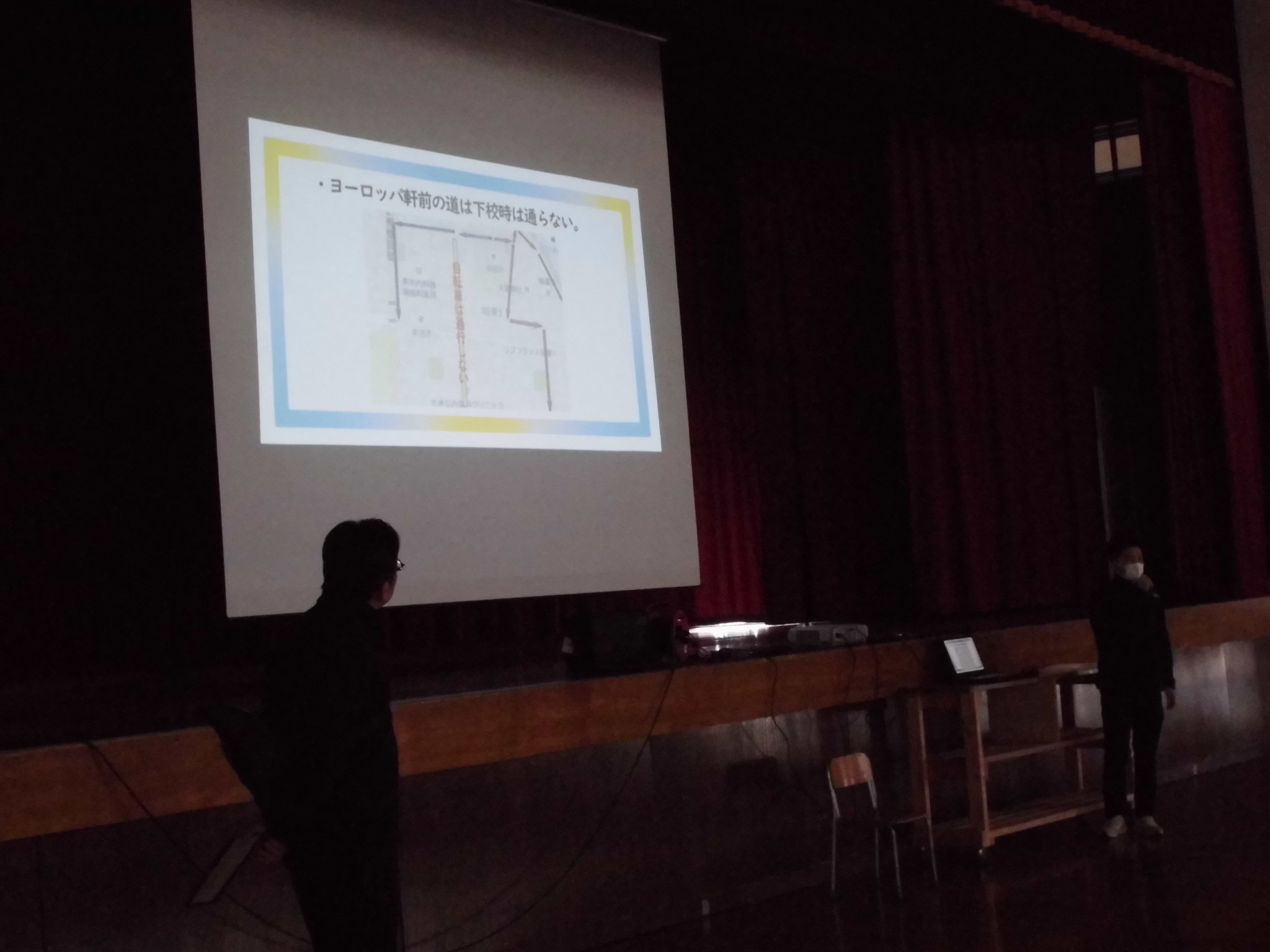 また、昼休みには、自転車通学の生徒を集めて、正しい自転車の乗り方や、自転車の通学路などについて再確認しました。
