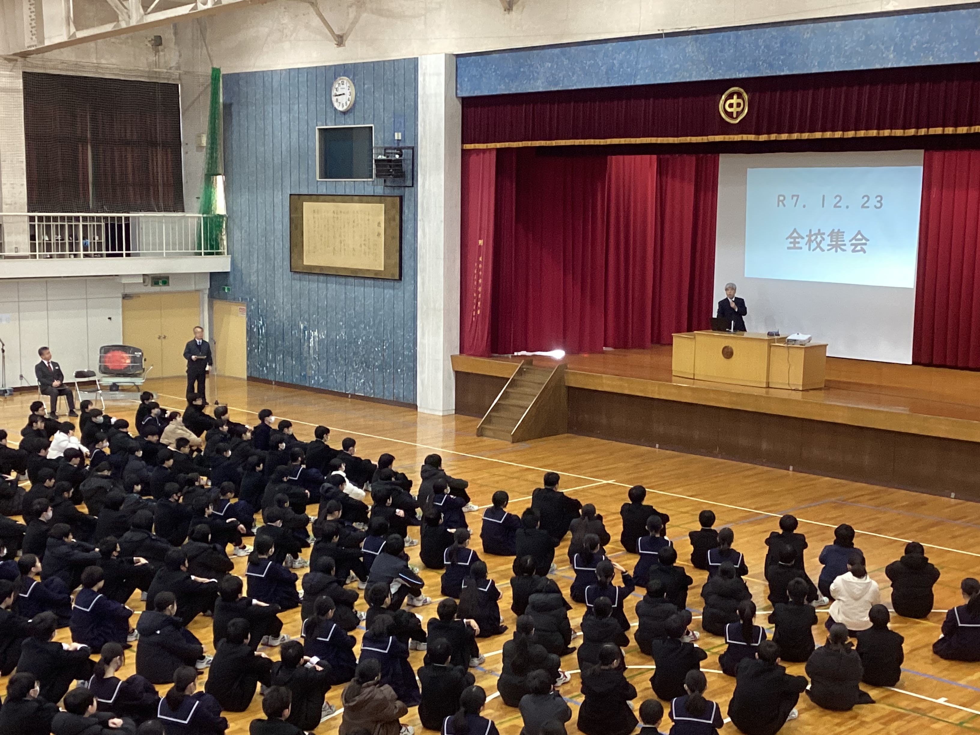1限目は、全校集会で伝達表彰や校長先生からの話がありました。