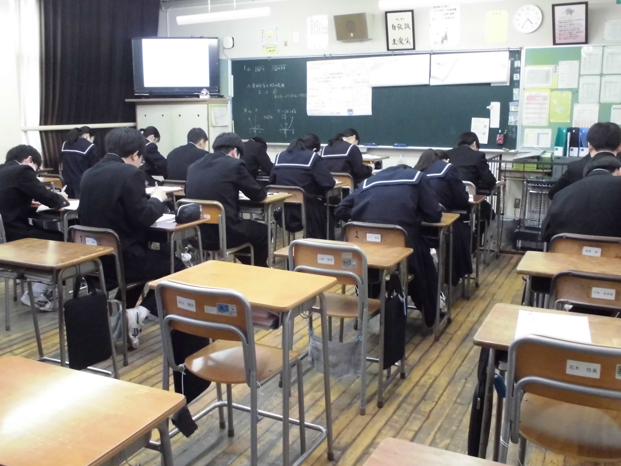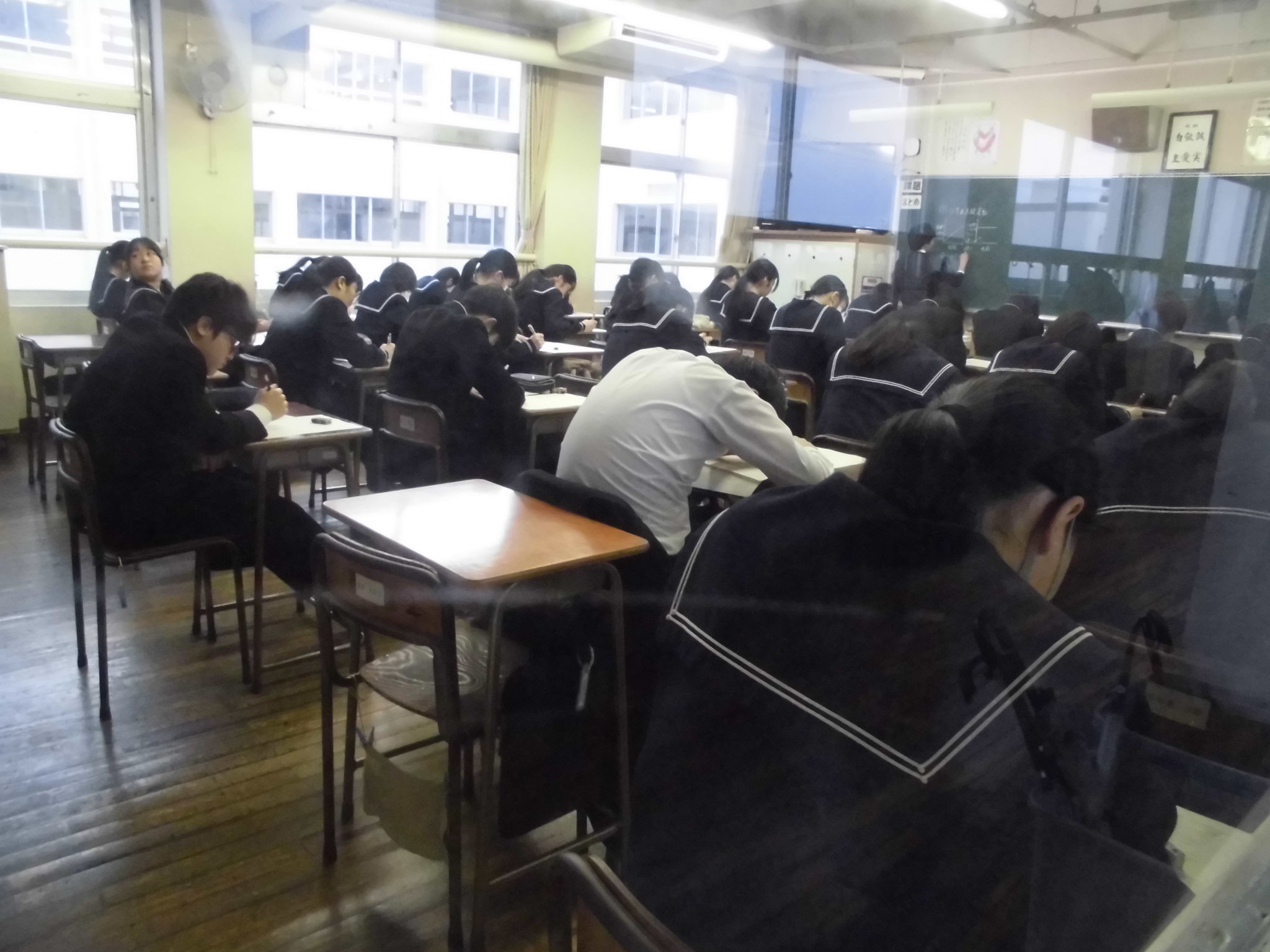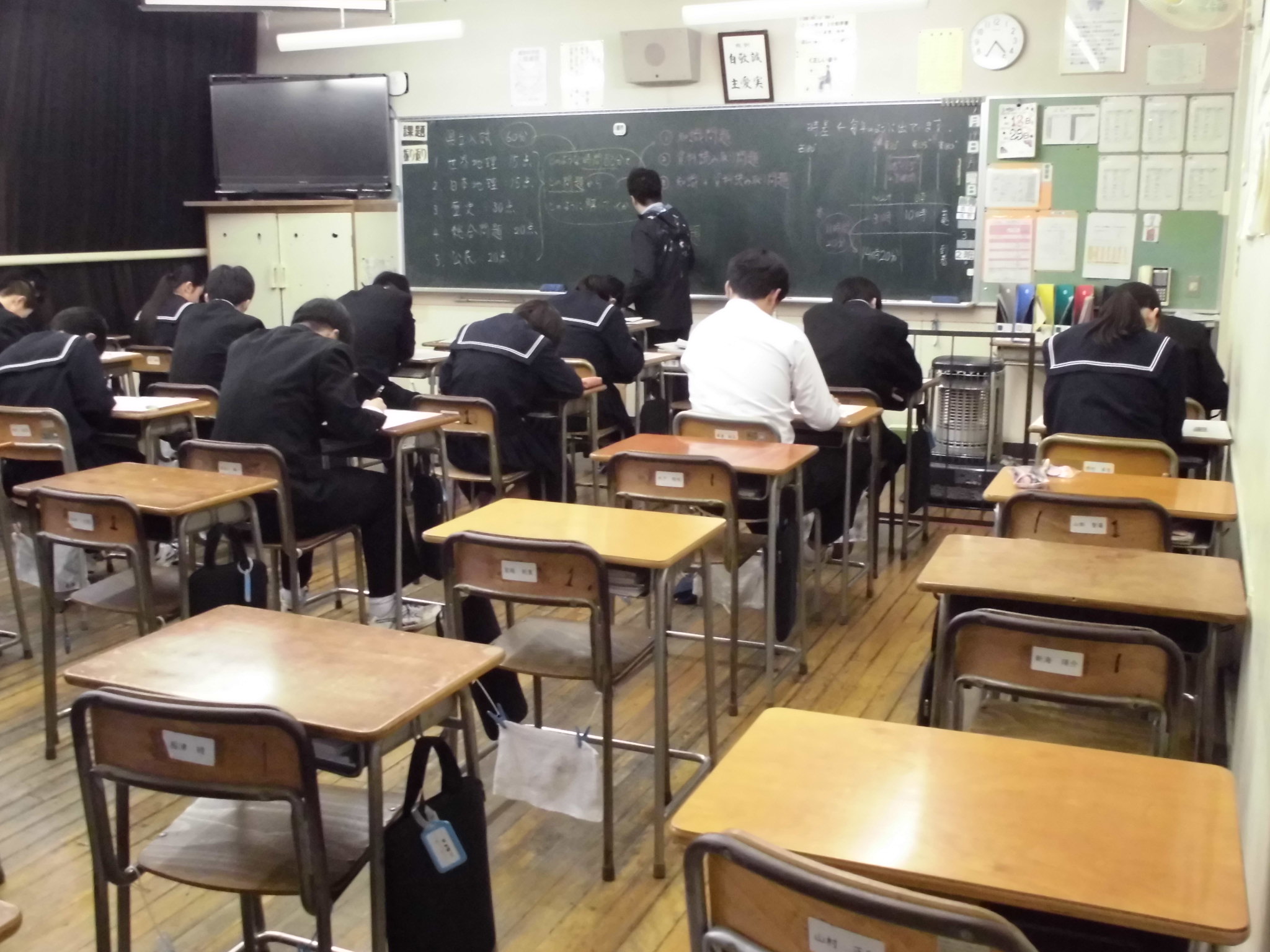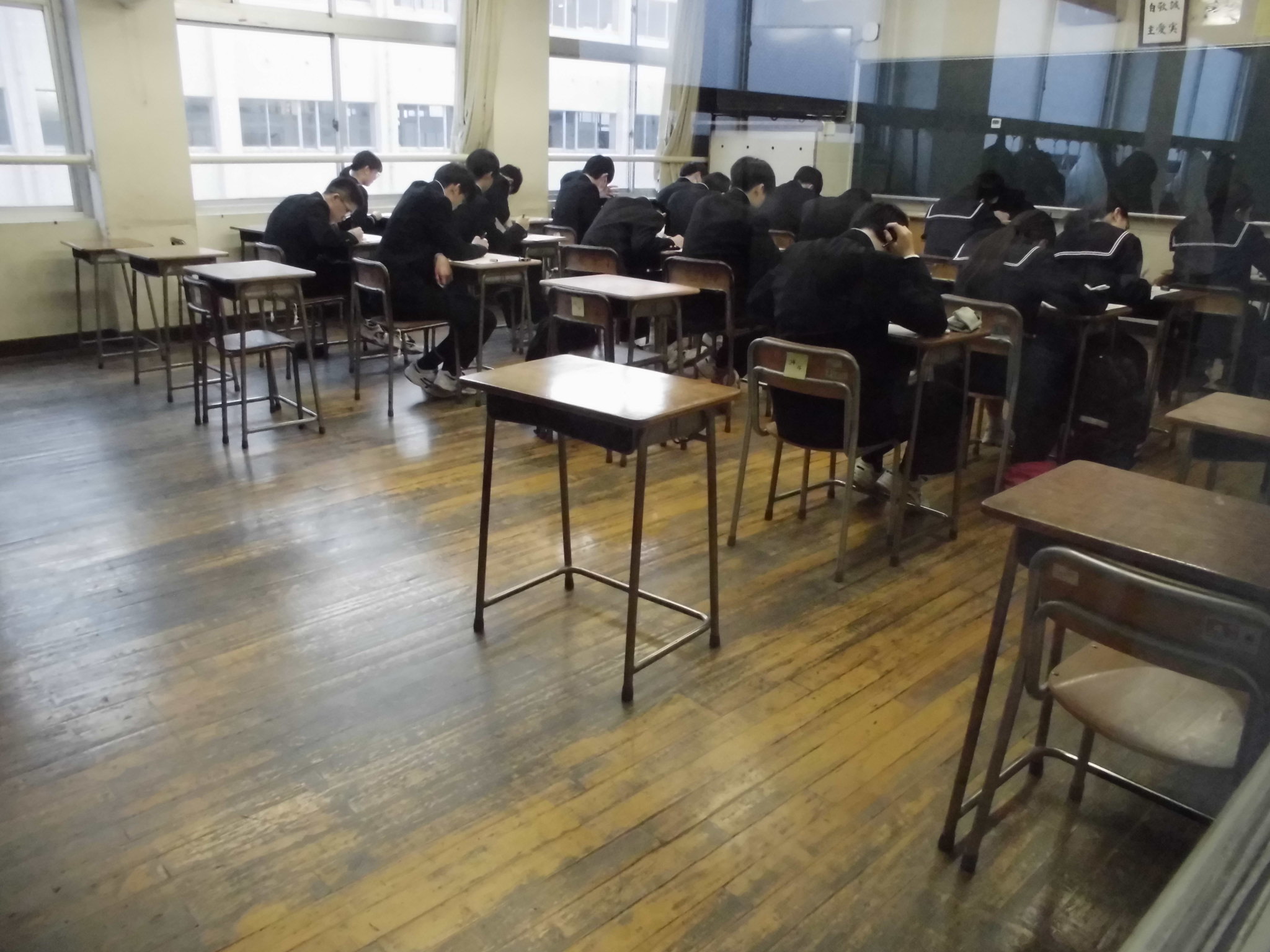 受験高校別に教室を分けて、学習会が行われています。