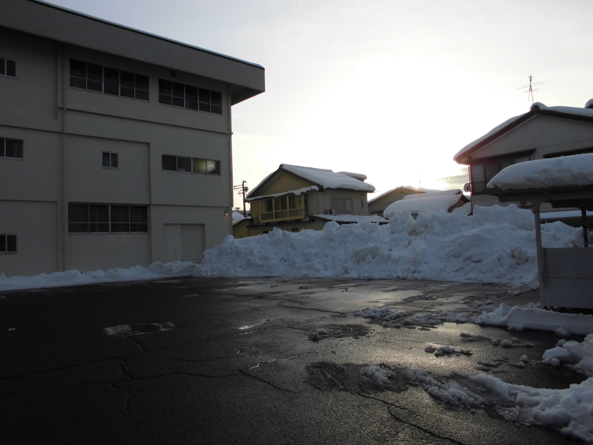 日曜日まで降り続いた雪の影響で、学校敷地内や通学路は、雪・雪・雪・・・