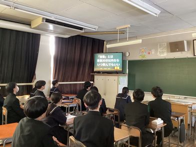 後半は、学校薬剤師の高畠先生、学校医の加藤先生、カウンセラーの奥村先生からのお話を聞きました。
