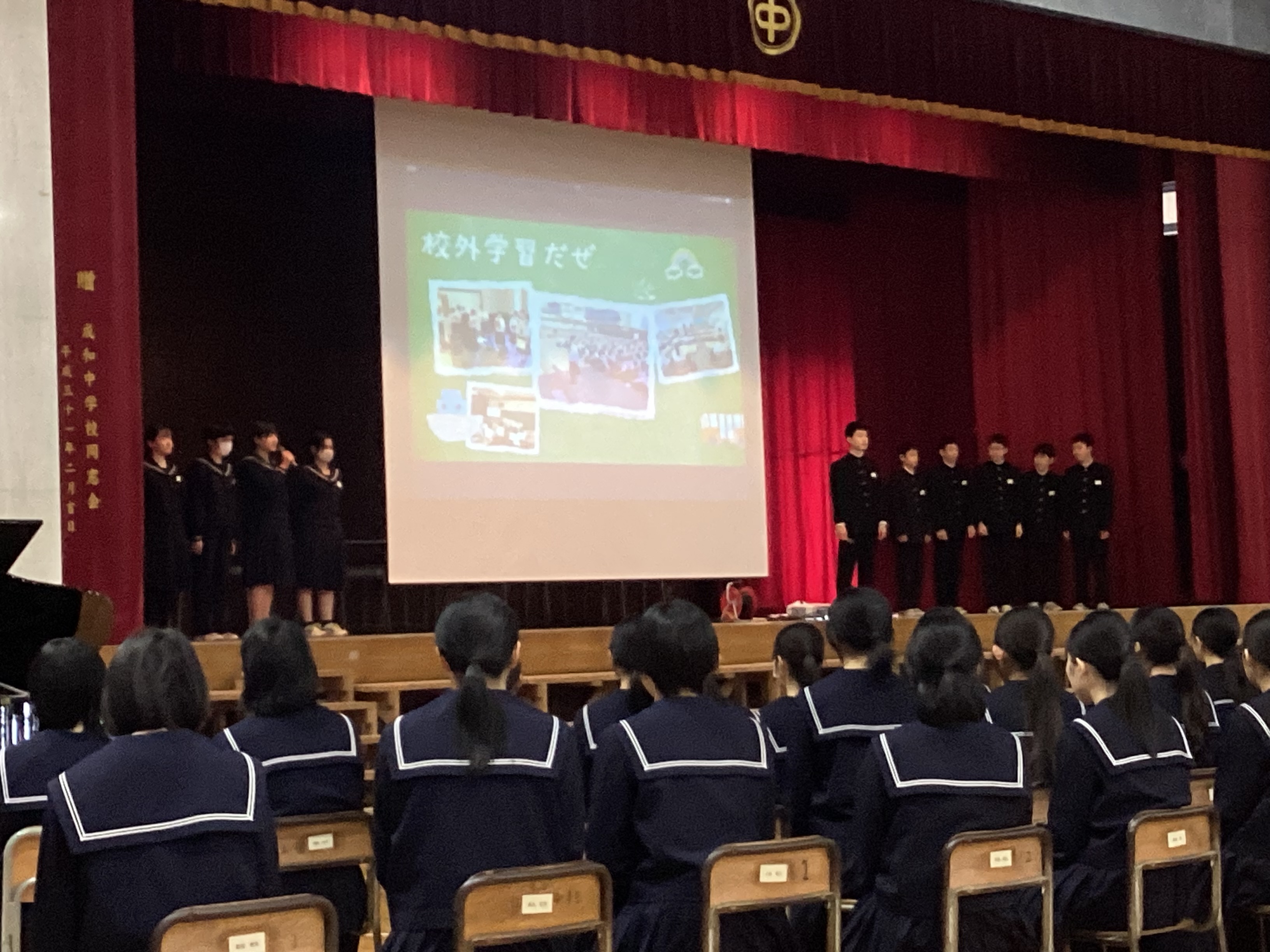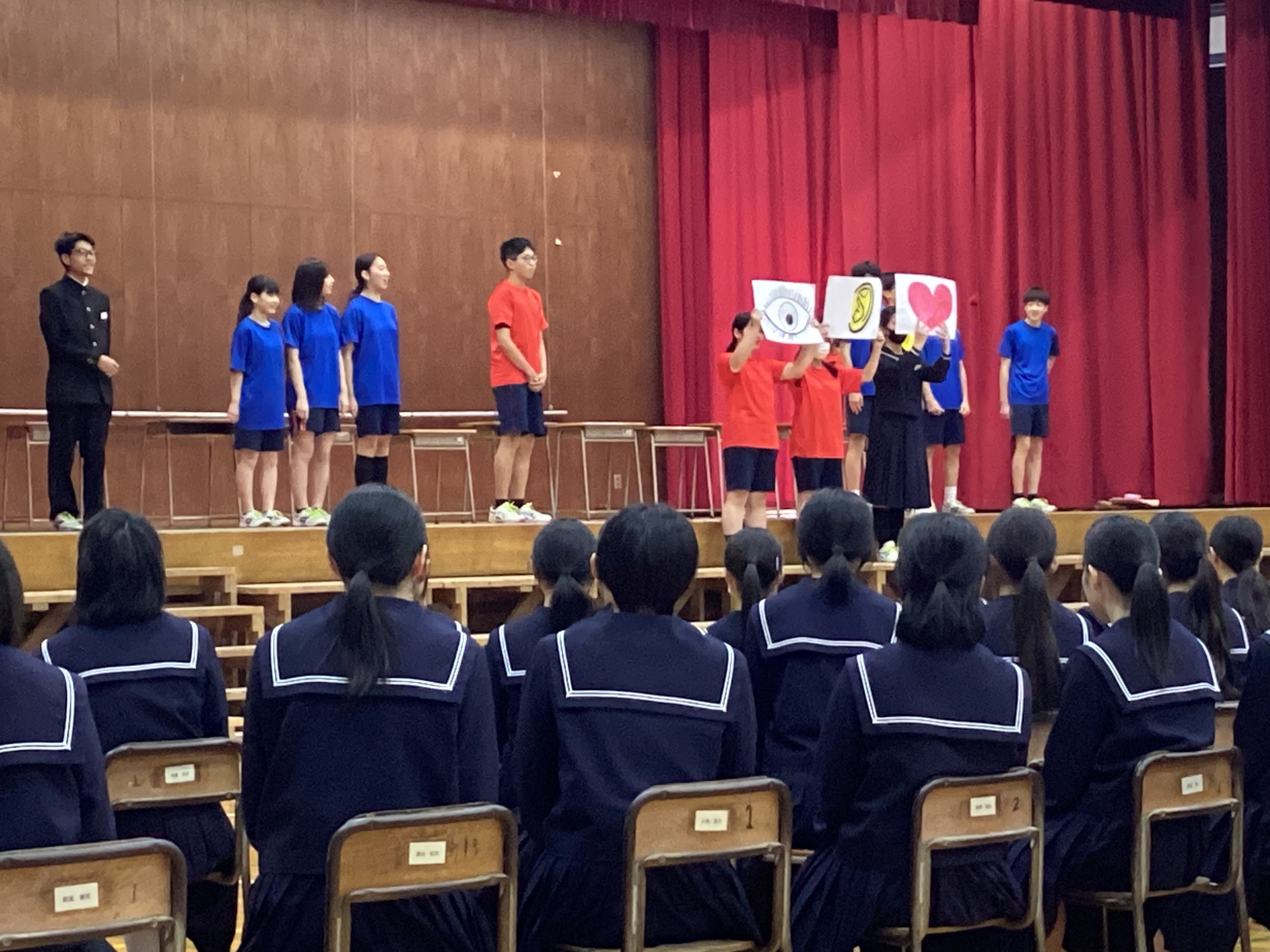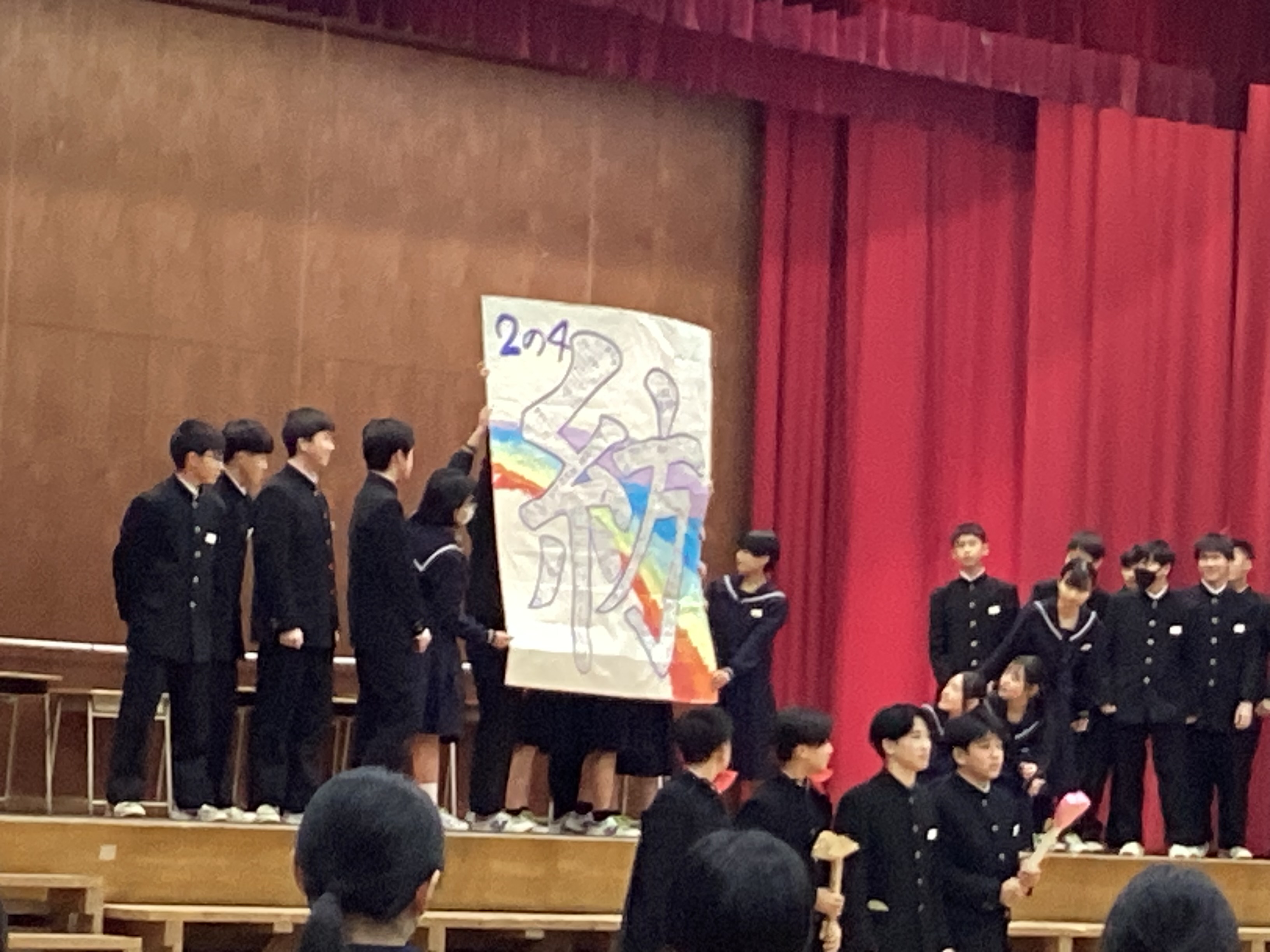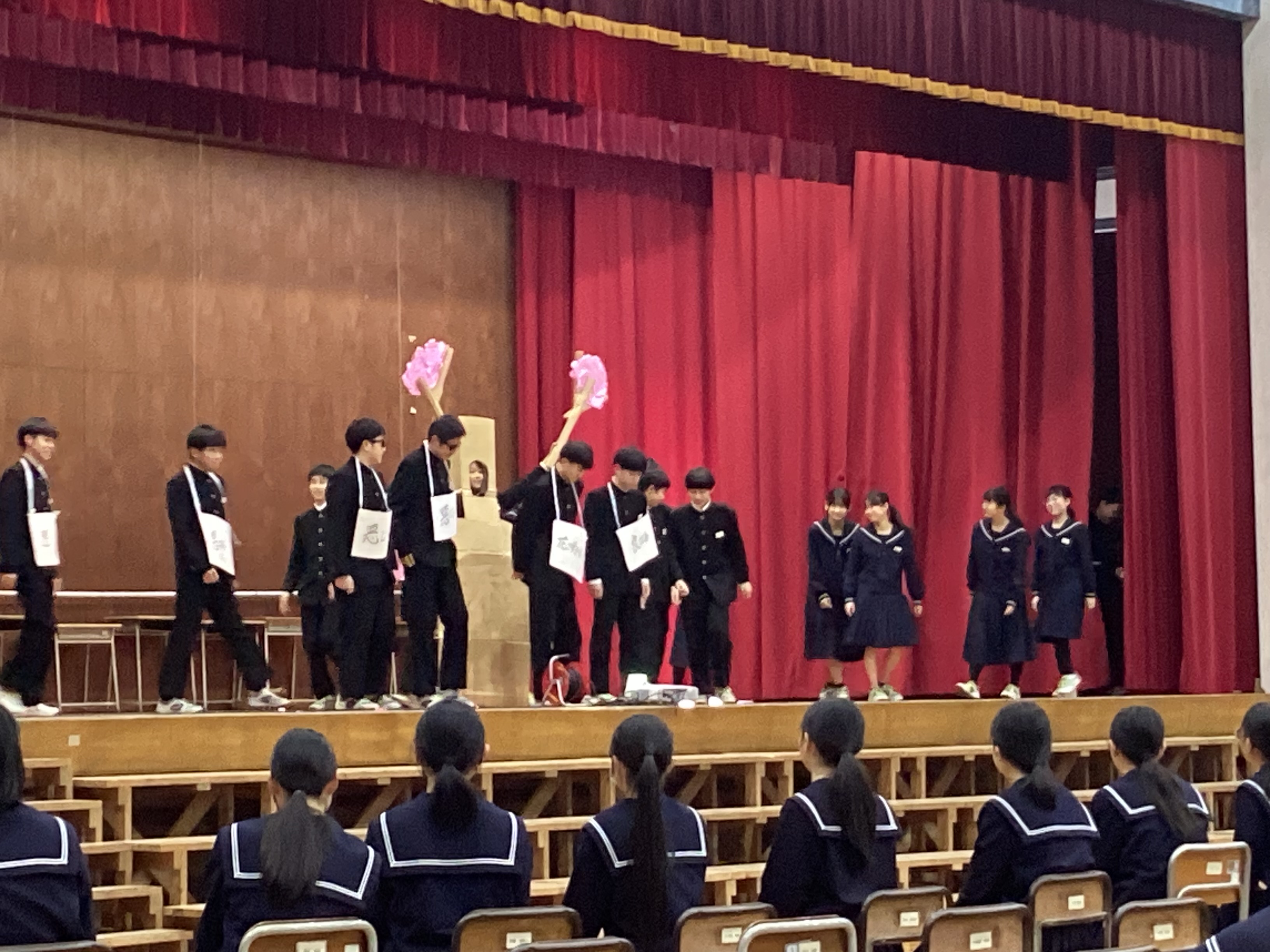 学年発表では、6つのそれぞれのクラスが趣向を凝らした演出で「決意の言葉」に関する劇やプレゼンを行いました。