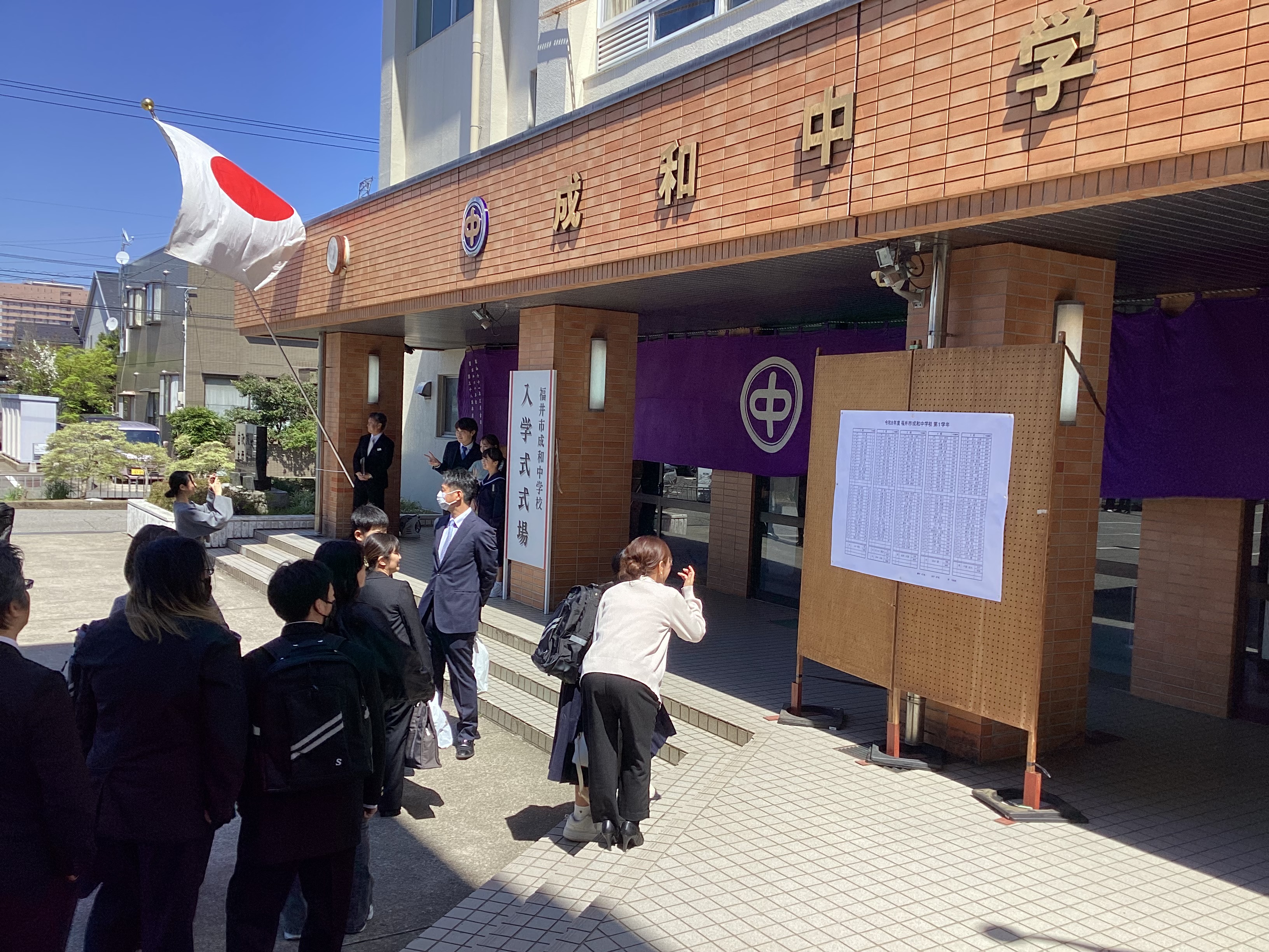 爽やかな青空の下、期待に胸を膨らませた168名の新入生が成和中学校の仲間入りとなりました。