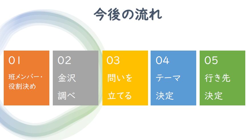 今日は、総合学習および校外学習のオリエンテーションです。