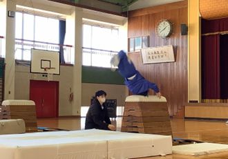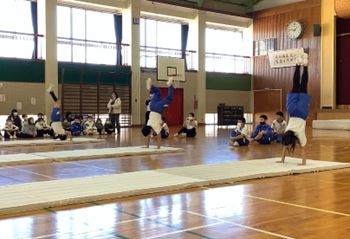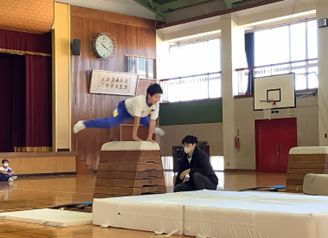 子供たちは「跳び箱、マット、鉄棒」に分かれて、練習の成果を発表しました。