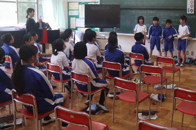 [画像:IMG_6723.jpg][画像:IMG_6731.jpg] 国語で学習したことを生かし、1年生にむけて「音読げき」の披露会をしていました。一人一人が役割を果たしている姿は立派で、よいお手本になってい