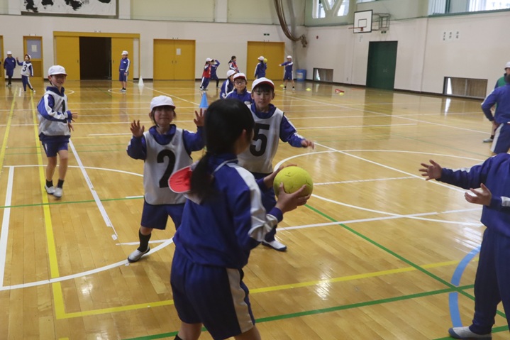 | [画像:IMG_7288.jpg][画像:IMG_7295.jpg][画像:IMG_7293.jpg] ネット型ゲームとしてバレーボールに取り組んでいました。ラリーが続くようになると楽しさが倍増するでしょう。今後の上達を楽しみに |