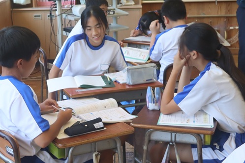 | [画像:IMG_6430.jpg][画像:IMG_6431.jpg] 汗だくになっていた大休みを終え、教室にもどって黙々と漢字ドリルの学習を進めていました。しっかり書いてしっかり覚えようとがんばっていました。 |