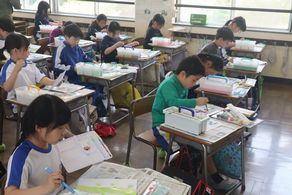 水彩絵の具を用いて自分なりの表現をしていました。26名の作品が掲示される日が楽しみです。