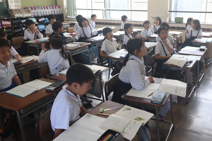 「元気のよい声が聞こえる」と思い2階に上がると、楽しく・工夫して音読に取り組んでいました。とても素敵な2学期スタートですね。