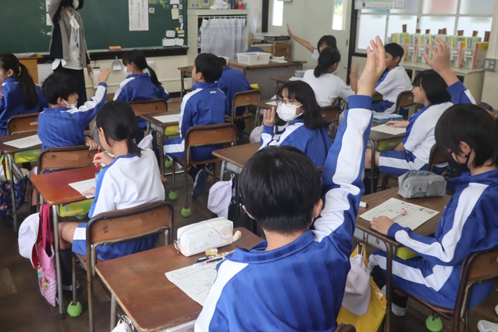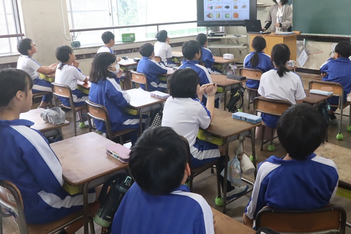 栄養教諭より「カルシウムの大切さ」について学びました。牛乳、魚類、こまつな、切り干し大根、海藻など、カルシウムを多く含む食べ物を改めて確認していました。