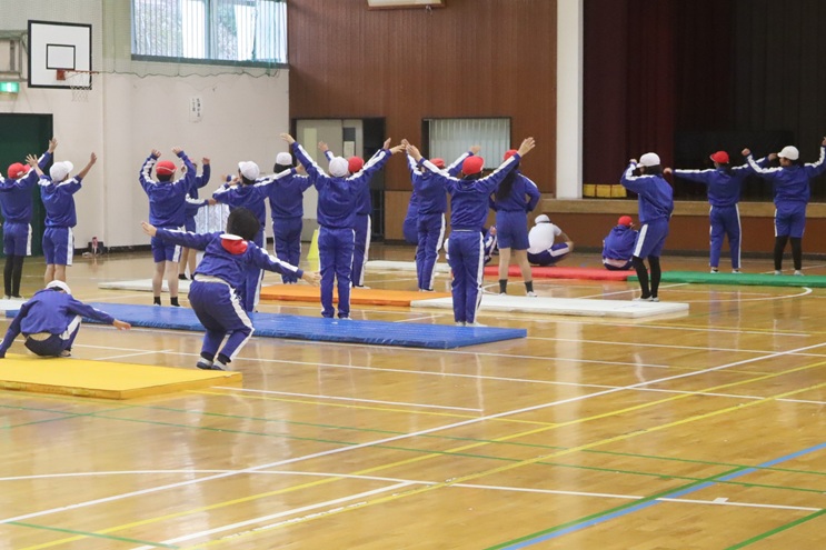 器械運動「マット運動」が始まっています。「肩倒立→足を振り下ろして→立ち上がる」の練習をして、前転の動きにつなげていくようです。自分なりの「運動の美しさ」を追求してほしいものです。