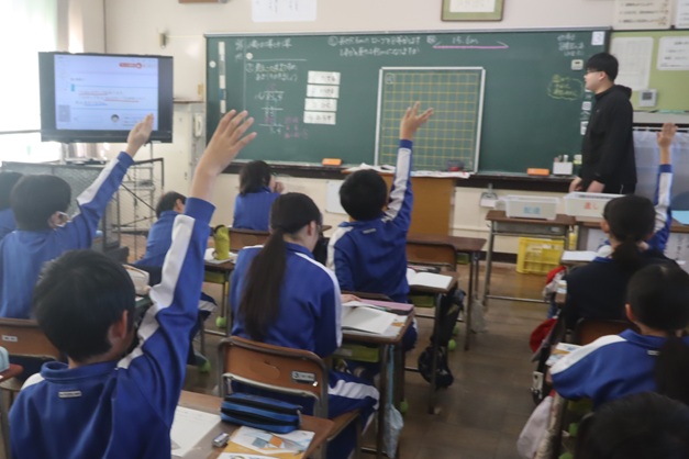 余りを出さずに最後まで割り切る計算問題に取り組んでいました。教師の話をしっかり聞き、熱心に考えていました。