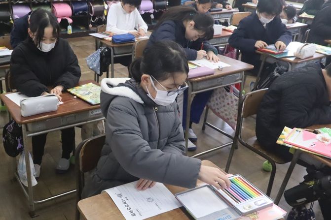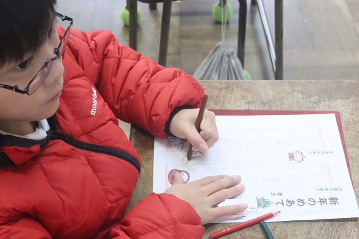 教室を巡ると「新年の目標や誓い」を考えていました。目標に向かってがんばり、よい年にしていきましょう。