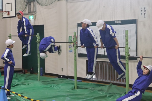 寒い体育館・冷たくなった鉄棒に負けず、熱く練習に取り組んでいました。チャレンジした分だけ力になりますね。