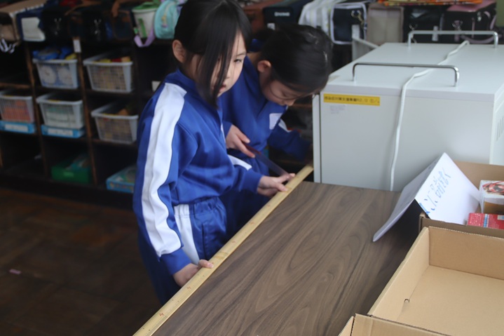 身のまわりの1mをこえるものの長さを測っていました。予想と合っていたり大きく異なっていたりしていたようです。実体験は大事ですね。