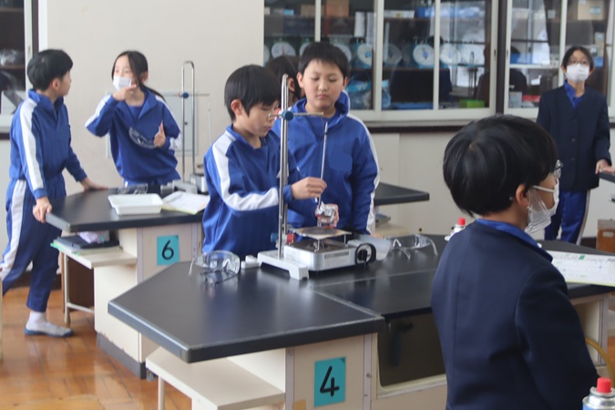 理科の醍醐味のひとつは実験です。水を温め、水温がどのように変化するかを確かめていました。