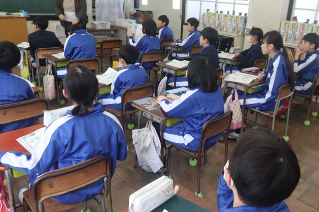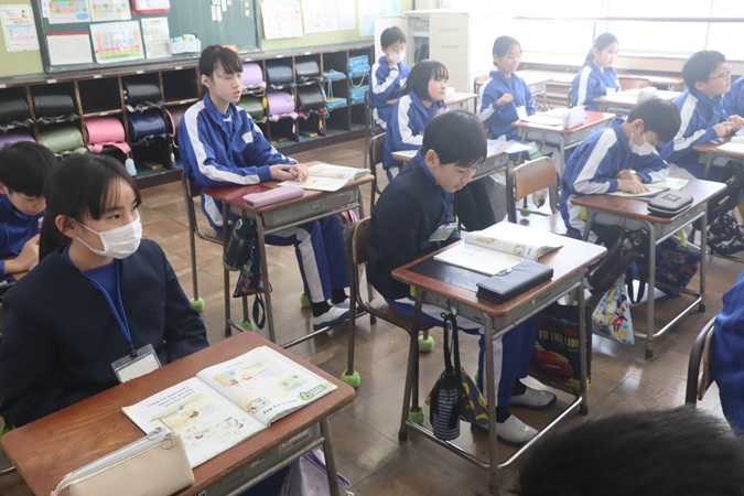 ALTと「1日のすごし方」をもとにして会話活動に取り組んでいました。今までに聞いたことのある単語を生かして学習を進めていました。英語学習をいっそう好きになってほしいものです。
