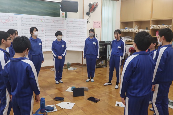 卒業式の歌の練習をアルトとソプラノに分かれて取り組んでいました。卒業式当日を含めて6年生の登校日は11日です。最後の追い込み、がんばりましょう。