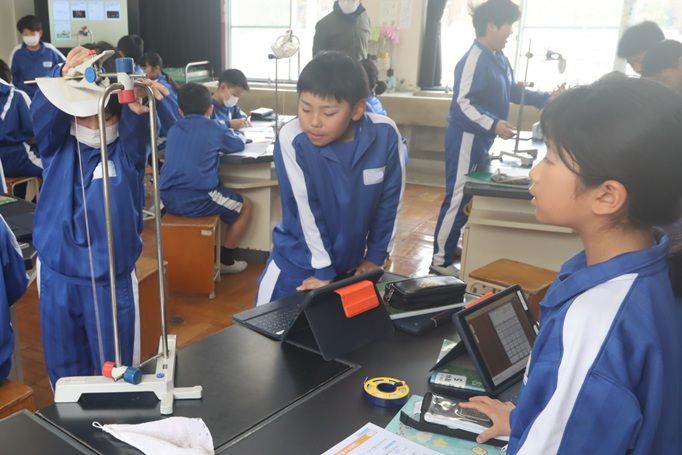 ふりこが「1往復する時間」は「糸の長さ」で変わるのでしょうか。「ふれ幅(角度)」で変わるのでしょうか。実験・記録をしながら確かめていました。
