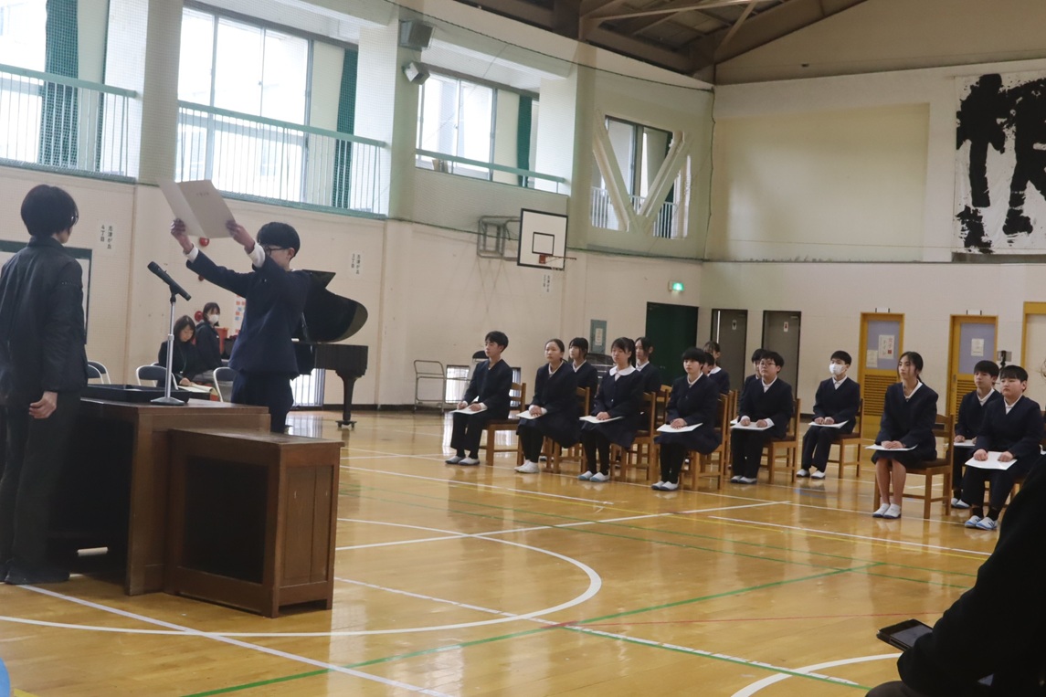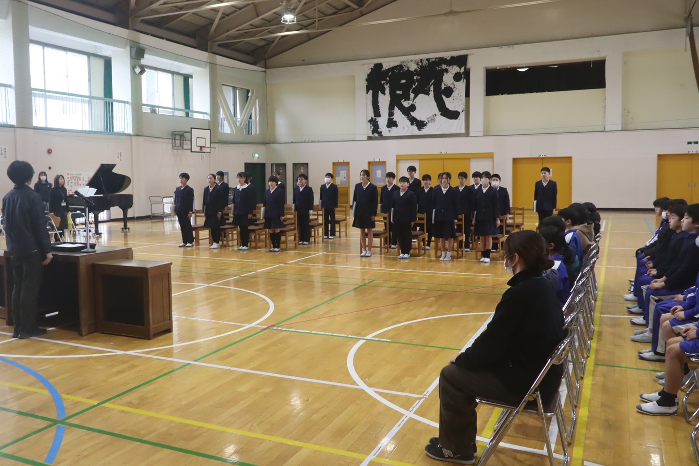 卒業生・教職員・5年生で卒業式予行を行いました。3月10日のハレの日に向けて真剣に取り組む卒業生の姿は立派でした。見守る5年生にもその思いが伝わっていたようです。