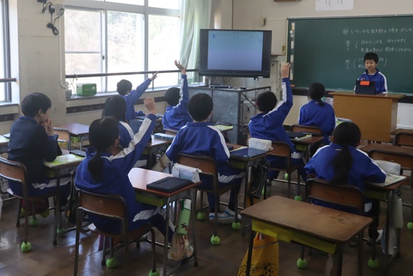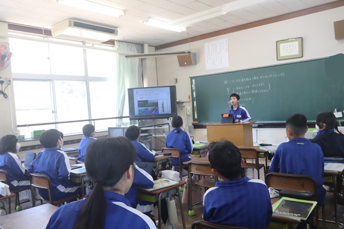学習のまとめとして、それぞれが対象の生き物を決めて「生き物の1年」を調査し、その結果を発表していました。発表内容や発表の仕方、周りの様子から、4年生みんなの成長がうかがえました。