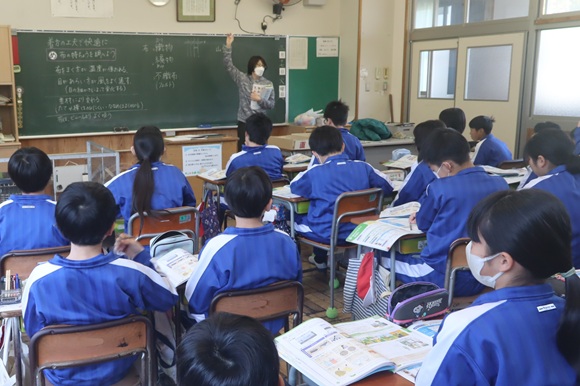 布の特ちょうなどを整理し、衣服の着方について学習していました。教室移動を終えた「新6年教室」で意欲的に学んでいる姿が立派です。
