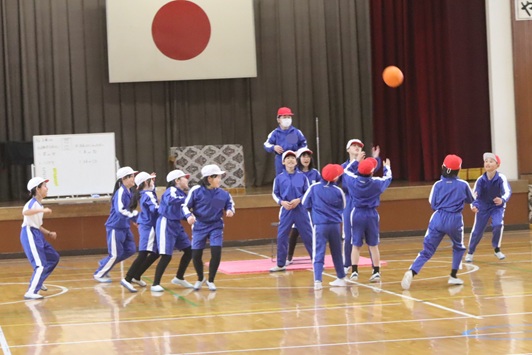4年生最後の体育の学習で、お楽しみ会を兼ねてのゲームを行っていました。いよいよ高学年。活躍を期待しています。