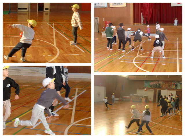 今日の朝の活動の時間に、1年生と6年生による合同ドッジボールを行いました。