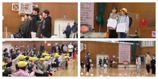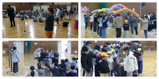 感謝の気持ちを込めて交流のゲームや出し物を披露しました。1年生の「じゃんけん列車」、2年生の